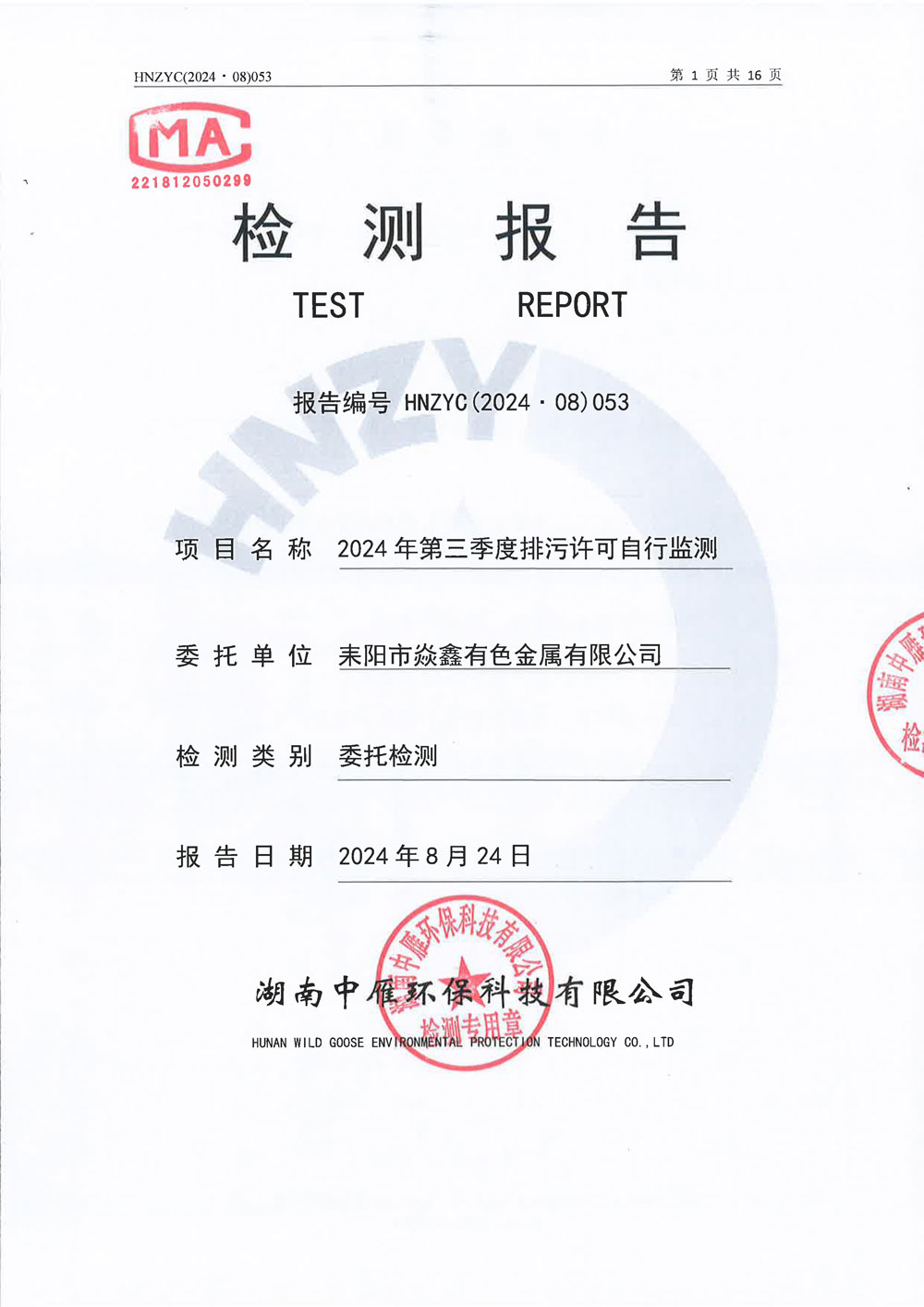 2024年第三季度排污許可自行監(jiān)測(cè)檢測(cè)報(bào)告